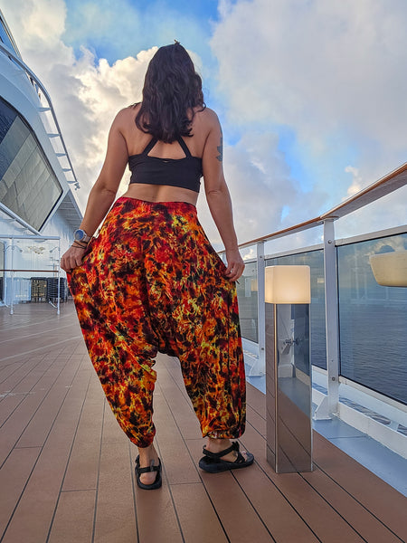 Made of super soft, breathable, cotton rayon, they keep you cooler on hot summer days. A left side button pocket brings them to the next level, and an elastic ankle keeps them from draggin9thg and getting stepped on. Add the unique Dimples Dyes colors and they are the ULTIMATE!